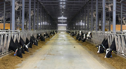 それによって、スタッフ全員が同じ目標に向かって仕事に取り組める環境となり、労働時間の短縮など業務改善につながっています。牛舎は牛へのストレスが少なく、スタッフがのびのびと働けて、作業しやすい導線を考えて設計した、こだわりのフリーストール牛舎を採用しています。