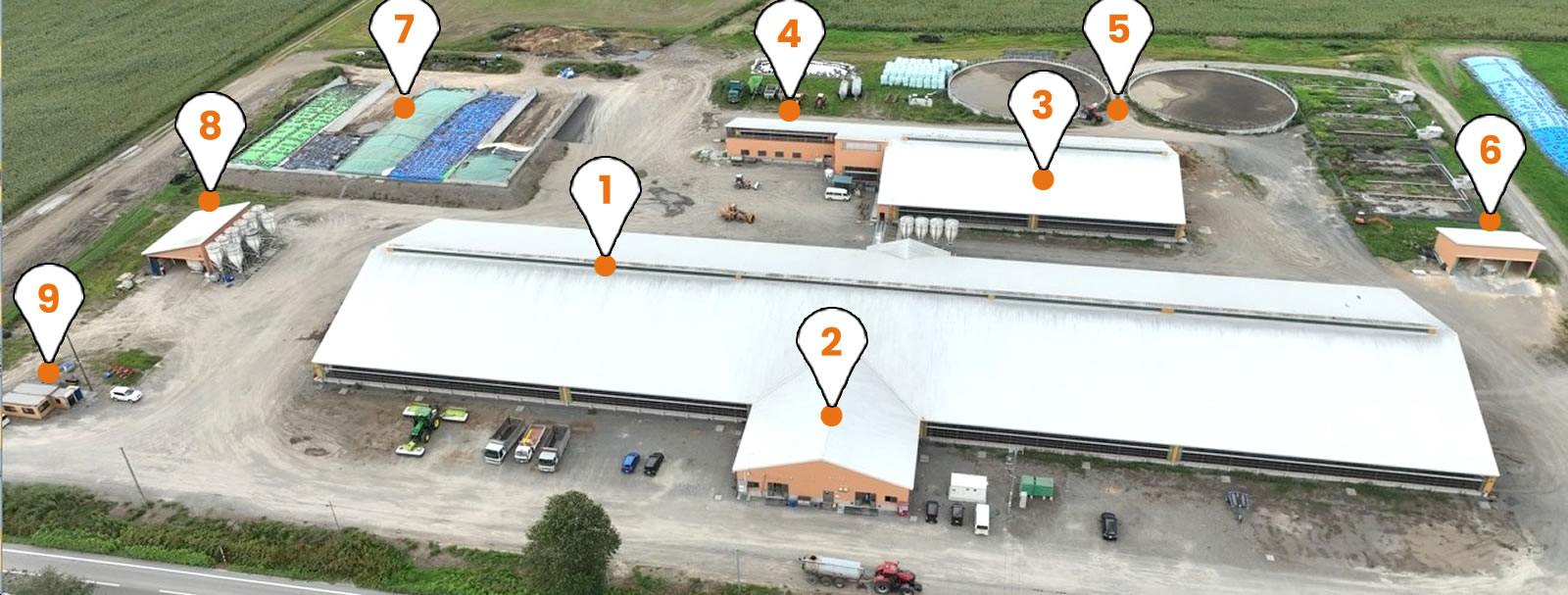 「ロボット搾乳機」を8台導入し、480頭の牛が自分から搾乳機に入ることで、従来の「搾乳時間」が無くなり、労働負担が大幅に軽減されました。シフトが組みやすくなり、有給休暇の取得しやすさにつながっています。牛もスタッフも過ごしやすい導線設計をしたフリーストール牛舎を採用しています。